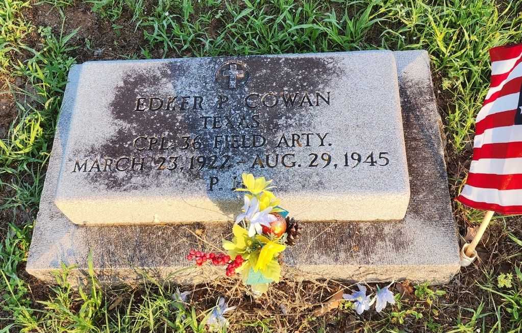 Edkar P. Cowan, 23, was a youngster who joined the army at age 16. He saw action from Algeria to Germany, received a Purple Heart, and was scheduled to invade Japan, but the war ended. Sixteen days after the Japanese surrender, in Llano Co., he entered a bar called the B-C Club. He got into a fight, was hit in the back of the head, and as he lay on the floor, was shot to de